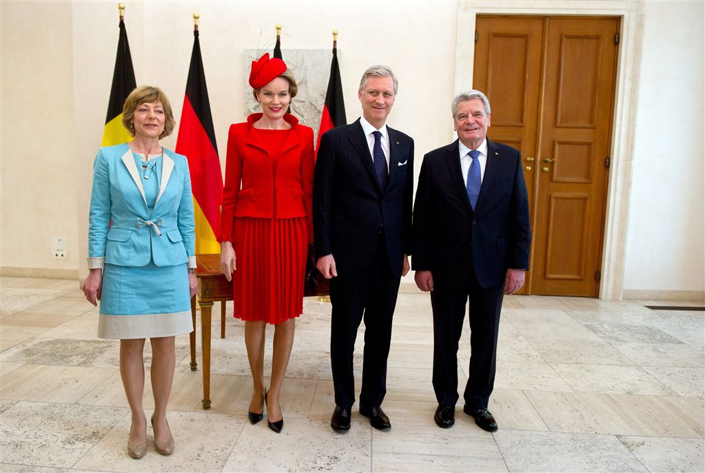 Filip en Mathilde kwamen rond 11 uur aan in Berlijn, melden Belgische media. Ze gingen direct naar Slot Bellevue, de ambtswoning van de Duitse bondspresident Joachim Gauck. Tijdens de lunch sprak Gauck over de gruwelijkheden uit de Eerste en Tweede Wereldoorlog. “Als vertegenwoordiger van Duitsland ben ik dankbaar en blij dat het nu mogelijk is om samen te herdenken”, zei de politicus volgens DPA.