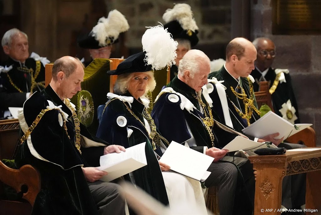 Een aantal prominenten van de Britse koninklijke familie heeft woensdag in het Schotse Edinburgh een dienst bijgewoond die in het teken stond van de Orde van de Distel. Onder anderen koning Charles, koningin Camilla en prins William zaten in de kathedraal van St. Giles in de Schotse hoofdstad.