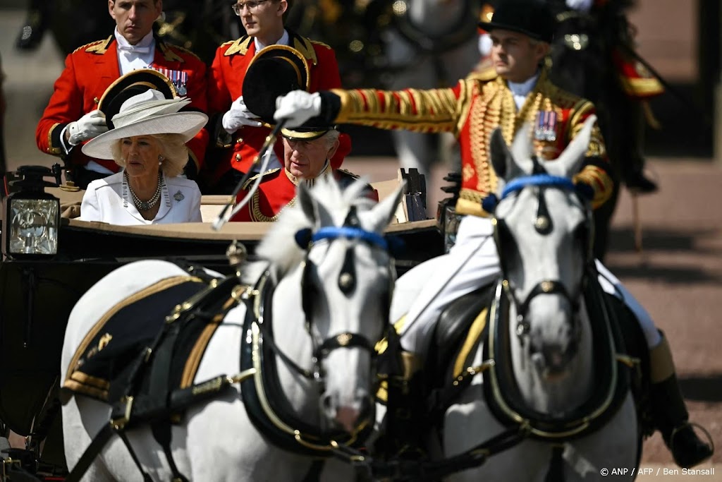 De 76-jarige Charles zat tijdens de militaire parade samen met zijn vrouw koningin Camilla in een koets. Een week geleden werd al bekendgemaakt dat Charles opnieuw niet te paard van Buckingham Palace naar Horse Guards Parade en terug zou rijden. Vorig jaar nam Charles vanwege zijn gezondheid voor het eerst in een koets plaats tijdens Trooping the Colour. De koning had toen pas recent weer zijn werk opgepakt nadat bekend was geworden dat hij wordt behandeld voor kanker. In 2023, zijn eerste Trooping the Colour als koning, nam Charles wel te paard deel aan de jaarlijkse militaire parade.