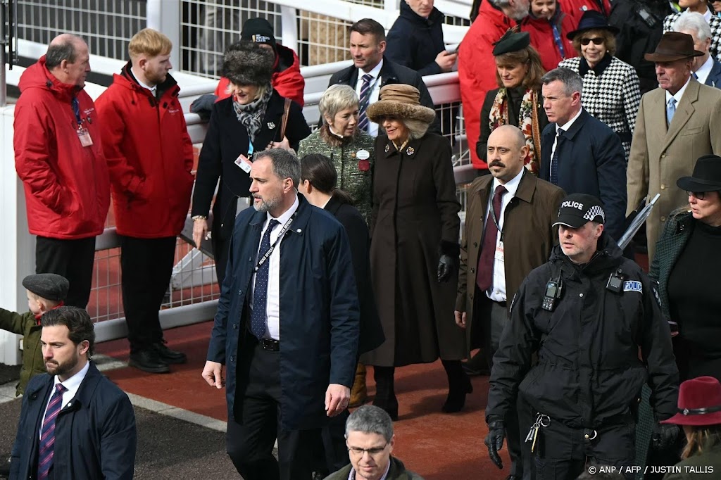 De Britse koningin Camilla is woensdag bij de paardenraces op het Cheltenham Festival, een prestigieus evenement waarbij een reeks steeplechases plaatsvindt.