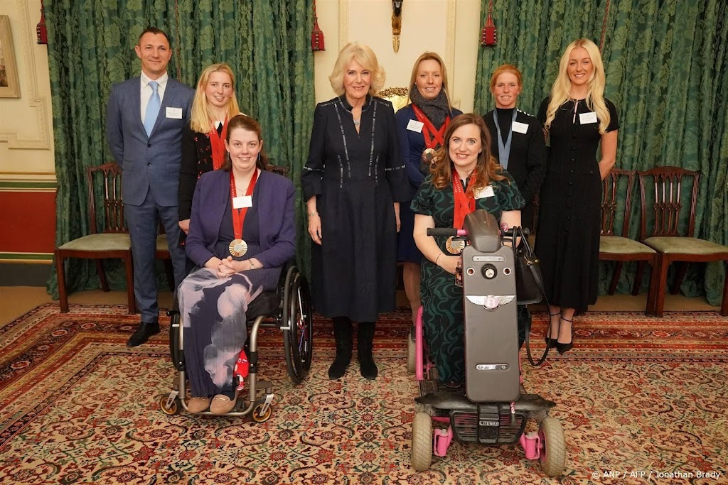 Koningin Camilla heeft de Britse amazones ontvangen die op de Olympische Spelen en de Paralympische Spelen van Parijs vorig jaar een medaille wonnen. De echtgenote van koning Charles deed dat als beschermvrouwe van de Britse paardensportbond.