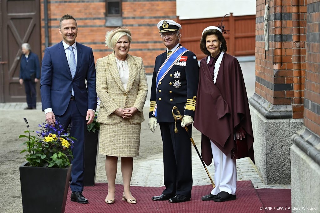Tómasdóttir en haar partner waren maandag al in Zweden. Toen maakten zij samen met kroonprinses Victoria en prins Daniel een wandeling in een beeldenpark.