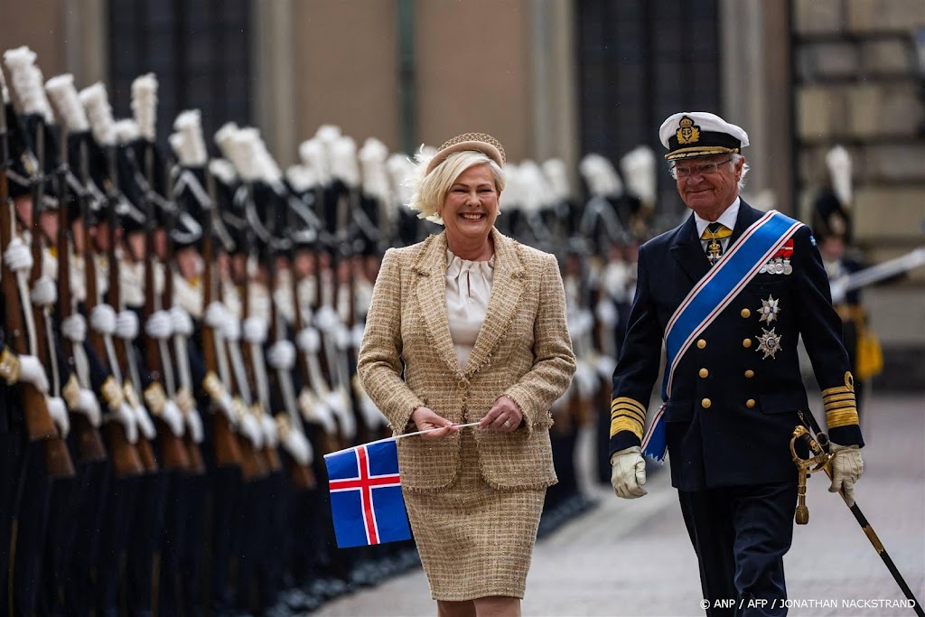 Koning Carl Gustaf ontving de IJslandse president Halla Tómasdóttir en haar partner Björn Skúlason eerder dinsdag. De twee zijn drie dagen in Zweden.