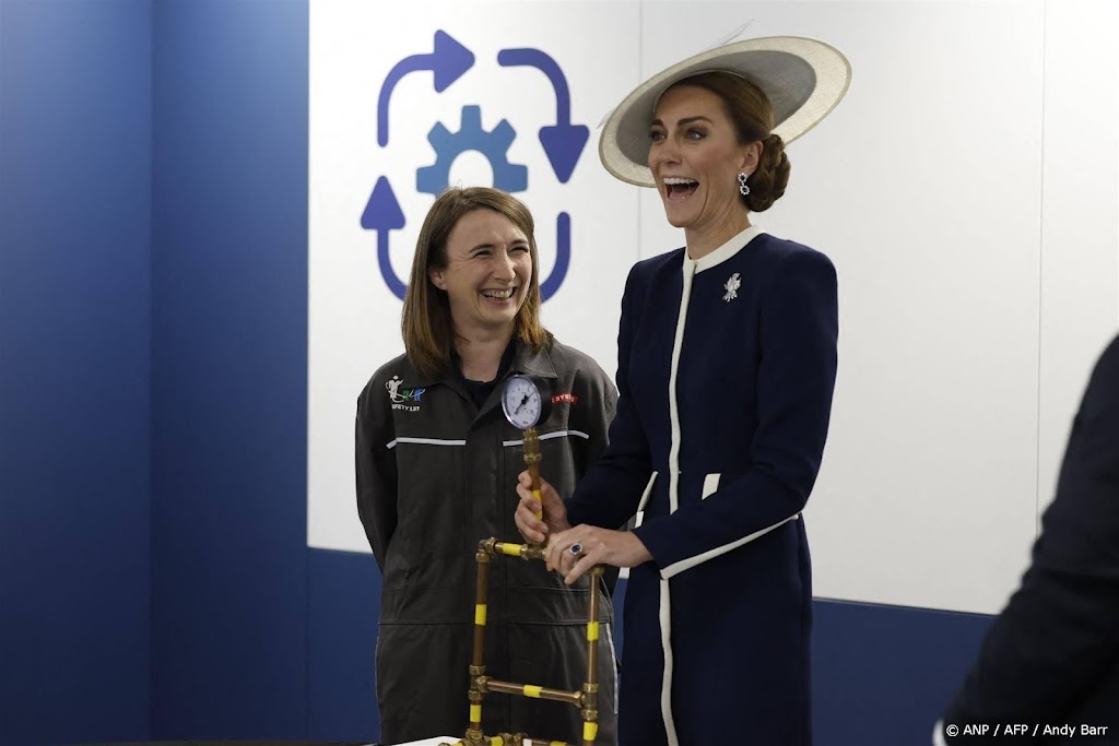 Prinses Catherine heeft donderdag in Glasgow een schip van de Britse koninklijke marine gedoopt. Ze deed dat traditioneel door een fles whisky tegen het fregat kapot te laten slaan. Prins William was ook bij de doop aanwezig.