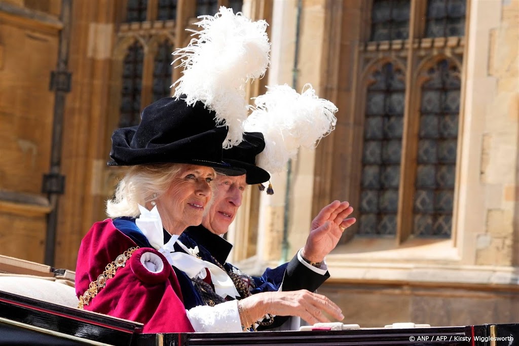 Koning Charles en koningin Camilla waren maandag in Windsor Castle aanwezig bij de jaarlijkse bijeenkomst van de Orde van de Kousenband. De zogeheten Garter Day kon rekenen op veel belangstelling van het publiek.
