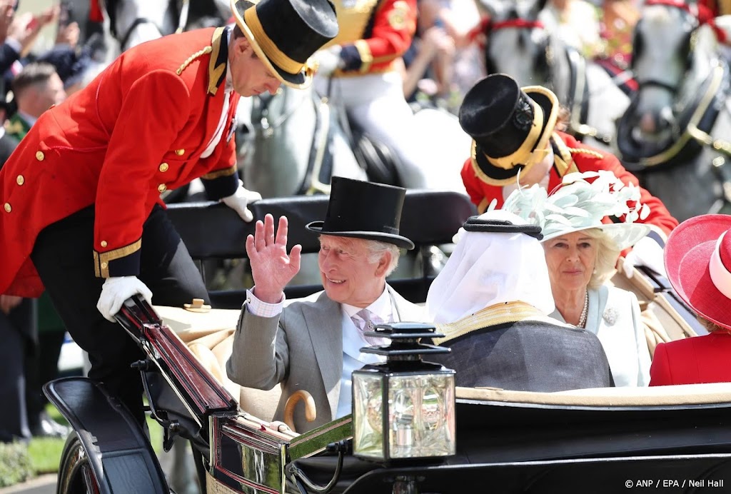 De Britse koning Charles en koningin Camilla hebben dinsdag hun opwachting gemaakt bij de paardenraces van Royal Ascot. Op de openingsdag van het jaarlijkse evenement reed het koningspaar per koets voorop in de traditionele processie, die de start van elke racedag markeert.