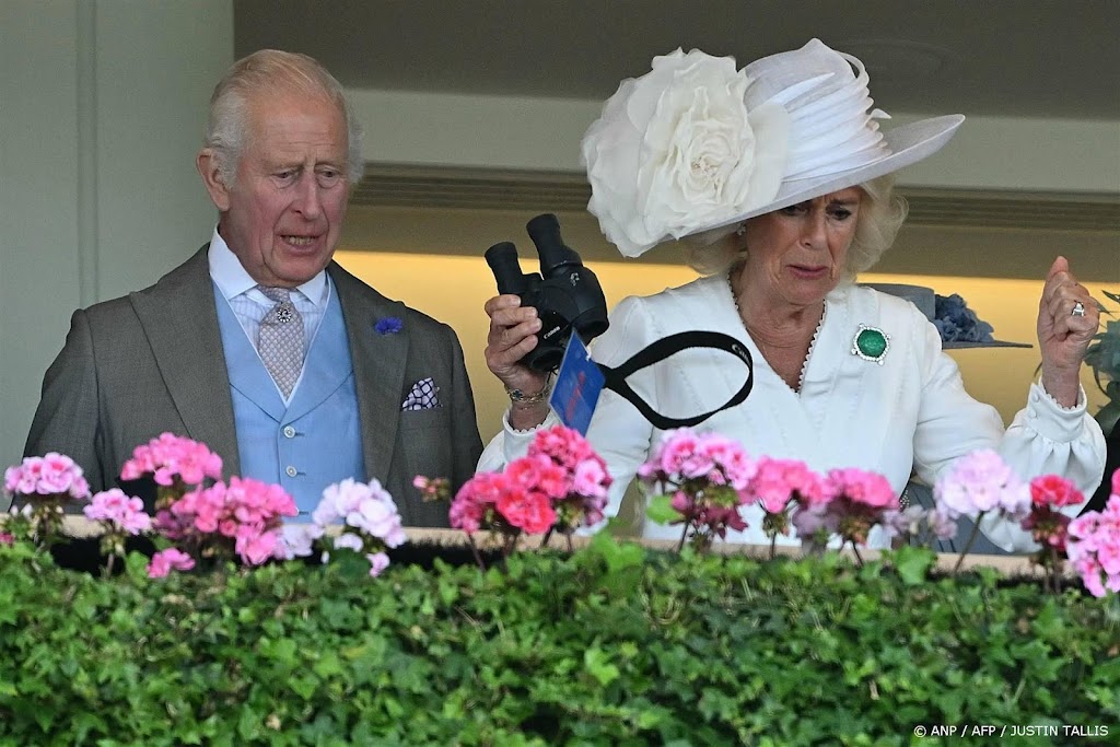Koning Charles en koningin Camilla hebben op de derde dag van de paardenraces van Royal Ascot hun favoriete renpaard zien verliezen. Op foto’s van het moment is te zien dat het echtpaar er flink van baalt dat hun paard Gilded Water niet heeft gewonnen. Camilla kijkt met gebalde vuisten en een zuur gezicht naar de renbaan beneden en ook de koning kijkt niet blij.