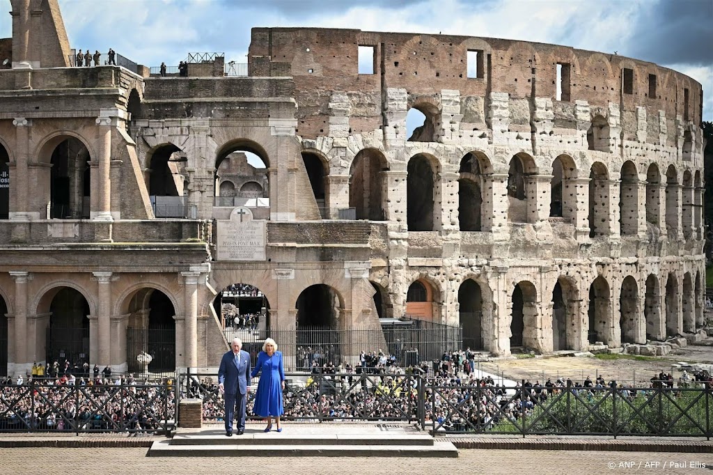 De Britse koning Charles en koningin Camilla hebben op de eerste dag van hun staatsbezoek aan Italië in het centrum van Rome een bezoek gebracht aan het Colosseum en de ruïnes van het Forum Romanum. Onder grote belangstelling poseerde het koningspaar bij het voormalige amfitheater. “Prachtig”, noemden ze het volgens Britse media.