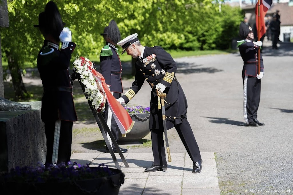 De Deense koning Frederik heeft dinsdag tijdens het staatsbezoek aan Noorwegen een krans gelegd bij het nationale monument in Oslo. De koning was samen met zijn vrouw Mary en de Noorse kroonprins Haakon en kroonprinses Mette-Marit aanwezig bij de ceremonie.