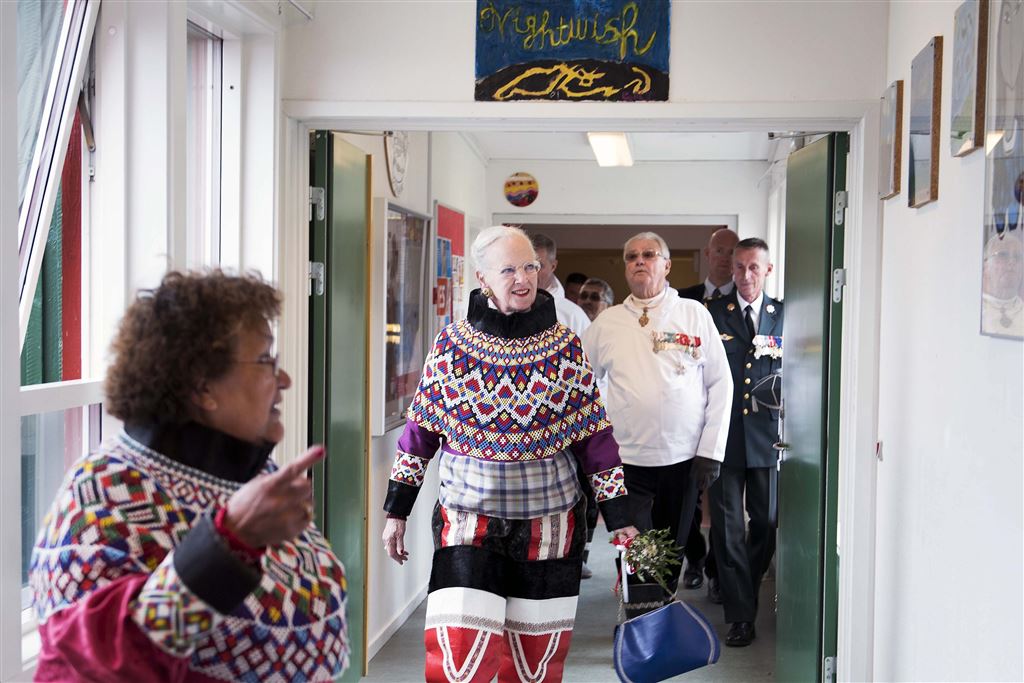 SAQQAQ – De Deense koningin Margrethe en haar man prins-gemaal Henrik hebben dinsdag in het westen van Groenland bezoeken gebracht aan de kustplaatsjes Qullissat en Saqqaq. De koningin is sinds 8 juli in Groenland, dat een autonoom onderdeel is van het Deense koninkrijk. Bij haar bezoek maakt Margrethe gebruik van het koningsschip Dannebrog. Veel van de Groenlandse dorpjes zijn ’s zomers ook alleen met een boot te bereiken.