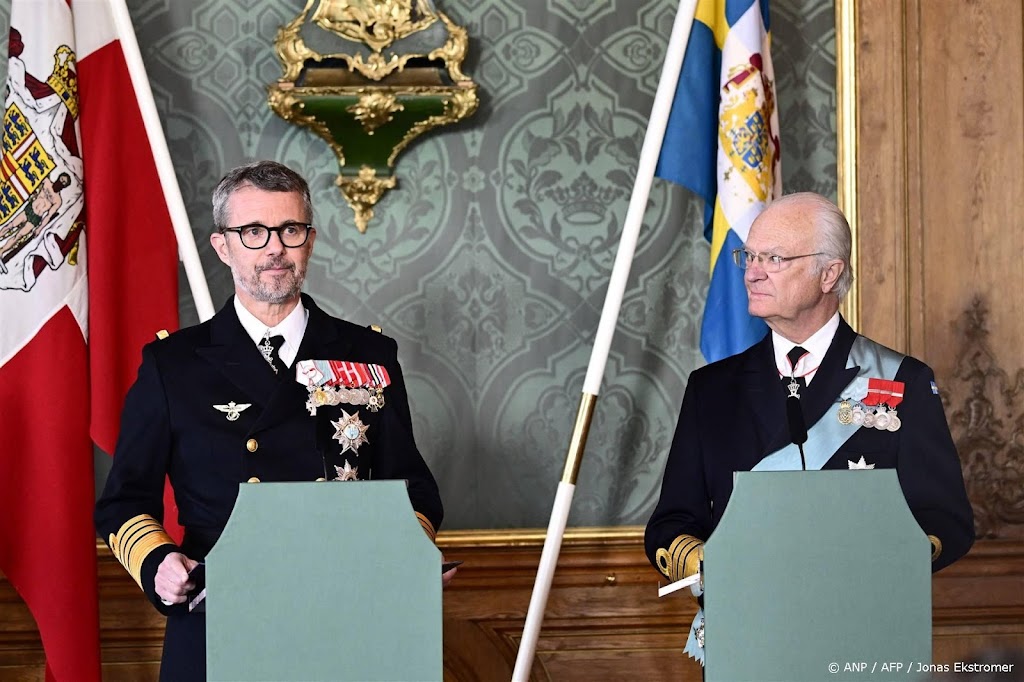 Frederik (55) richtte zich ook direct tot de Zweedse koning Carl Gustaf (78). “U bent nu de langstzittende monarch van Europa. Ik ben momenteel de kortstzittende. Maar ongeacht de periode, niemand van ons staat alleen. Dank u dat u ons op korte termijn hebt uitgenodigd voor ons eerste bezoek als koninklijk paar en dat u ons zo hartelijk heeft ontvangen.”