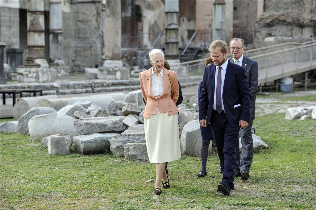 Donderdag nam de 77-jarige Margrethe al een kijkje bij het Forum van Caesar, onderdeel van het Forum Romanum. Daar gaf ze het startsein voor een archeologische opgraving. Volgens de Deense ambassade in Italië gaat het om de meest prestigieuze opgraving ooit waaraan Deense archeologen hebben meegewerkt. Het onderzoek is mogelijk gemaakt door de Carlsberg Foundation, een fonds van de Deense bierbrouwer Carlsberg ter bevordering van wetenschap en cultuur.