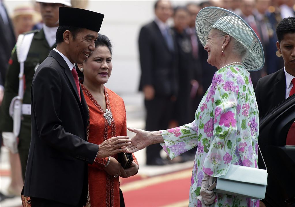 JAKARTA – Koningin Margrethe van Denemarken werd donderdag met ceremonieel vertoon ontvangen door de Indonesische president Joko Widodo en zijn echtgenote Iriana. Koningin Margrethe brengt op uitnodiging van de president een staatsbezoek aan Indonesië. Samen met hem inspecteerde ze de erewacht die stond opgesteld bij het Merdeka Paleis in Jakarta.