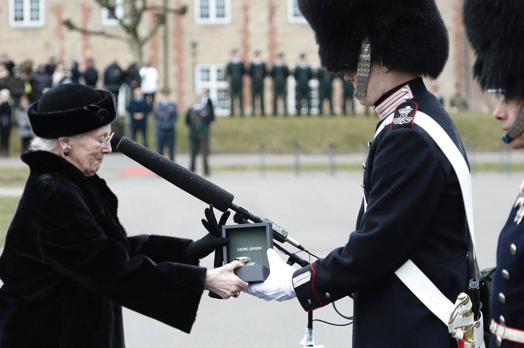 De soldaat in kwestie, Jens Jakob Leegaard, kreeg uit handen van de vorstin een horloge. Een in de zoveel tijd deelt Margrethe een ‘horloge van de koningin’ (Dronningens ur) uit aan de soldaat die in de afgelopen periode het meest is opgevallen. Hij of zij wordt aangewezen door officieren en collega’s. Het uitdelen van de uurwerken is een traditie die teruggaat tot 1970, de regeringstijd van Margrethes vader koning Frederik IX.