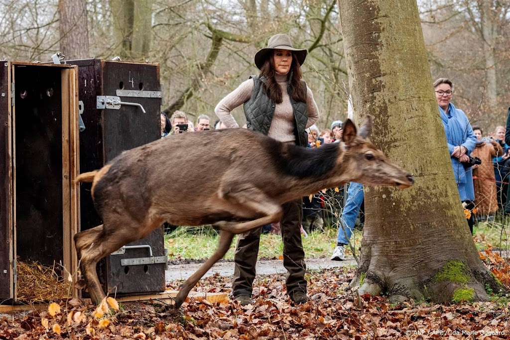 De Deense koningin Mary heeft dit weekend geholpen bij het loslaten van twee herten in het bos. Dat gebeurde bij de opening van een nieuw gedeelte van natuurgebied Dyrehaven, even ten noorden van Kopenhagen.