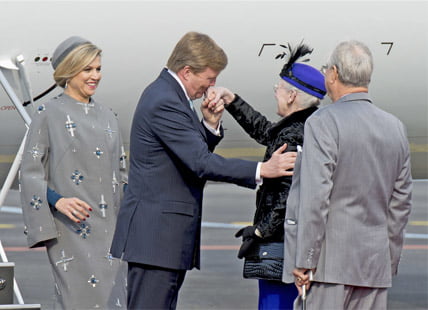KOPENHAGEN – Koning Willem-Alexander en koningin Máxima zijn dinsdag begonnen aan hun staatsbezoek aan Denemarken. Op het vliegveld van Kopenhagen werden ze verwelkomd door koningin Margrethe, prins-gemaal Henrik en bijna de gehele koninklijke familie. De Deense vorstin wilde daarmee al meteen het belang van het staatsbezoek van haar petekind onderstrepen.