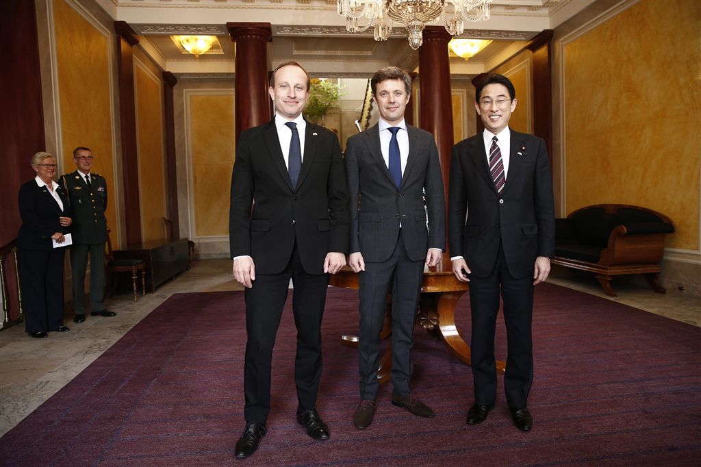KOPENHAGEN – De Deense kroonprins Frederik ontving vrijdag de Japanse minister van Buitenlandse Zaken Fumio Kishida op het koninklijk paleis Amalienborg in Kopenhagen. Ook de Deense minister van Buitenlandse Zaken Martin Lidegaard was bij de ontvangst van de Japanner aanwezig.