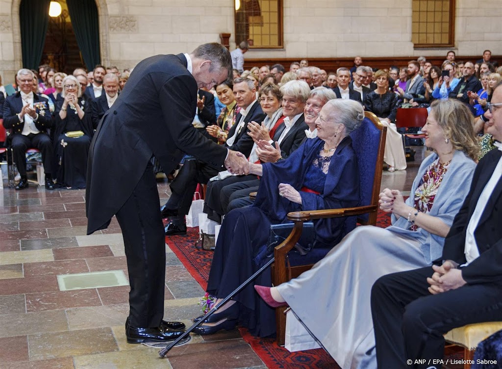 De afgetreden Deense koningin Margrethe was dinsdag aanwezig bij de medailleceremonie van de zogenoemde Ambachtsliedenvereniging in het stadhuis van Kopenhagen. Het hof deelt hier woensdag beelden van op Instagram.