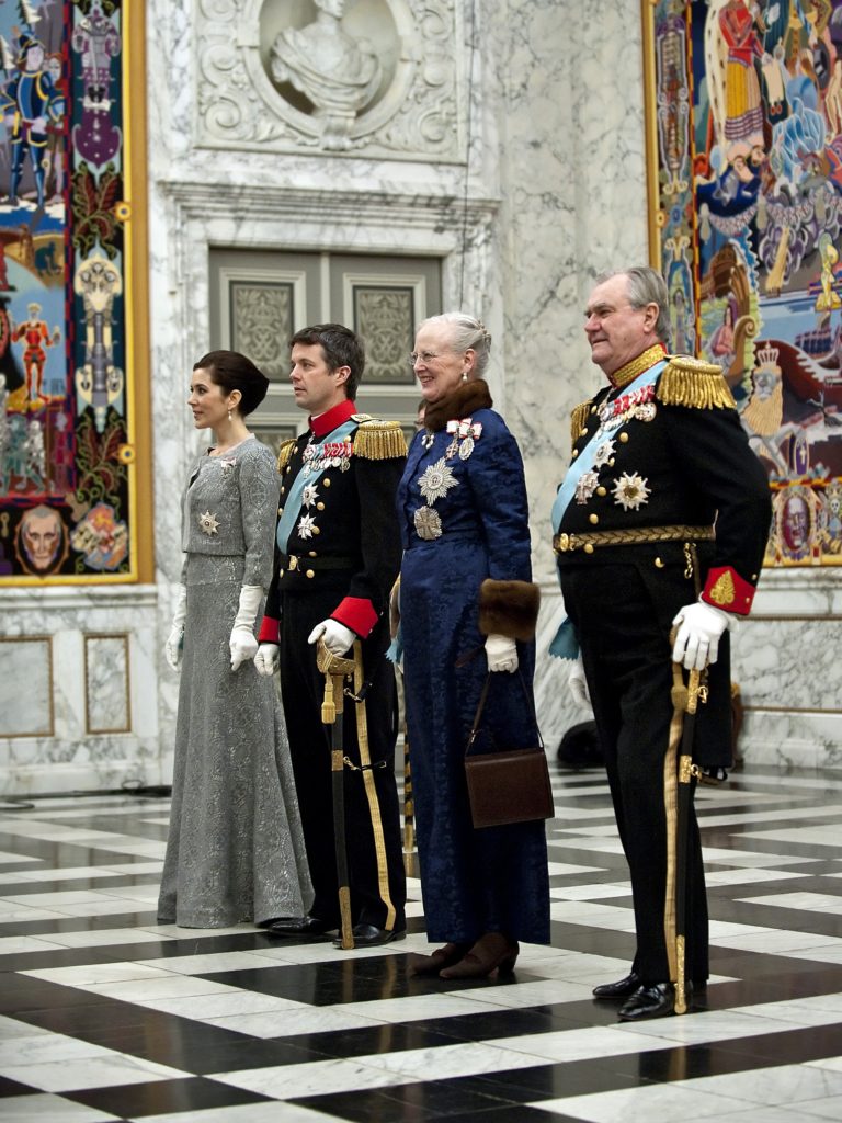 De Deense koningin Margrethe kon dinsdag voor het eerst in jaren weer de grootse traditionele nieuwjaarsontvangsten houden op Amalienborg en Christiansborg. De vorstin draagt bij de nieuwjaarsontvangst in januari altijd een zogenoemde hofjurk, en dat was voor het eerst in 25 jaar een rood exemplaar.
