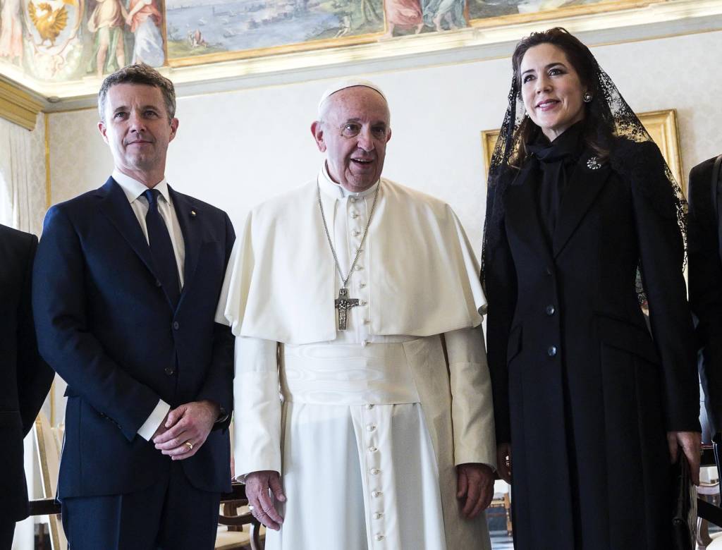 Kroonprins Frederik van Denemarken en zijn echtgenote kroonprinses Mary hebben donderdag in Vaticaanstad een ontmoeting gehad met paus Franciscus.
