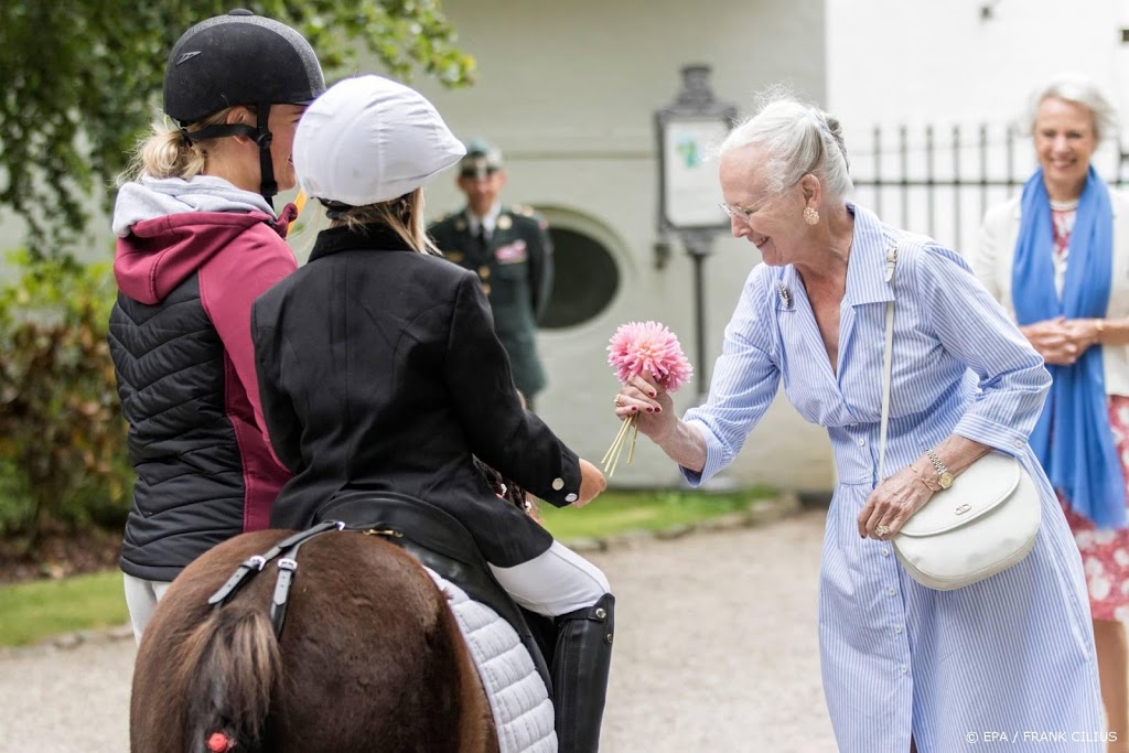 Koningin Margrethe van Denemarken heeft zondag weer honderden ringrijders toegewuifd. Tijdens de traditionele ‘Gråsten Ringriderforenings optog’ reden dit jaar 300 ringrijders langs Gråsten Slot, waar Margrethe elk jaar een deel van haar zomervakantie doorbrengt.
