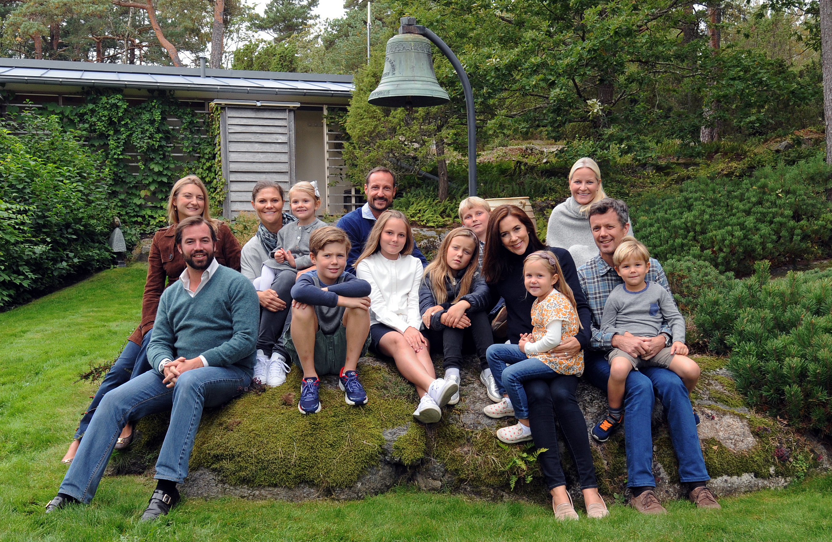 Het gezelschap poseerden in een tuin voor een foto. Het resultaat daarvan is onder andere te zien op de Facebookpagina van het Noorse en het Zweedse koningshuis.