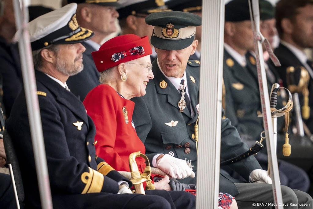 De Deense strijdkrachten hebben maandagochtend gevierd dat koningin Margrethe 50 jaar op de troon zit. Dat gebeurde met een vliegtuig- en marineparade in de wateren van Korsør. Op Instagram doet het Deense hof verslag van de viering.