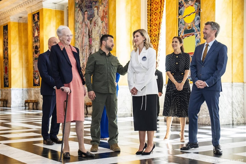 De Oekraïense president Volodymyr Zelensky en zijn vrouw Olena Zelenska hebben maandag een lunch met koningin Margrethe, kroonprins Frederik en kroonprinses Mary van Denemarken. De Oekraïners brengen een officieel bezoek aan het land. Zelensky was afgelopen weekend ook al kort in Nederland.