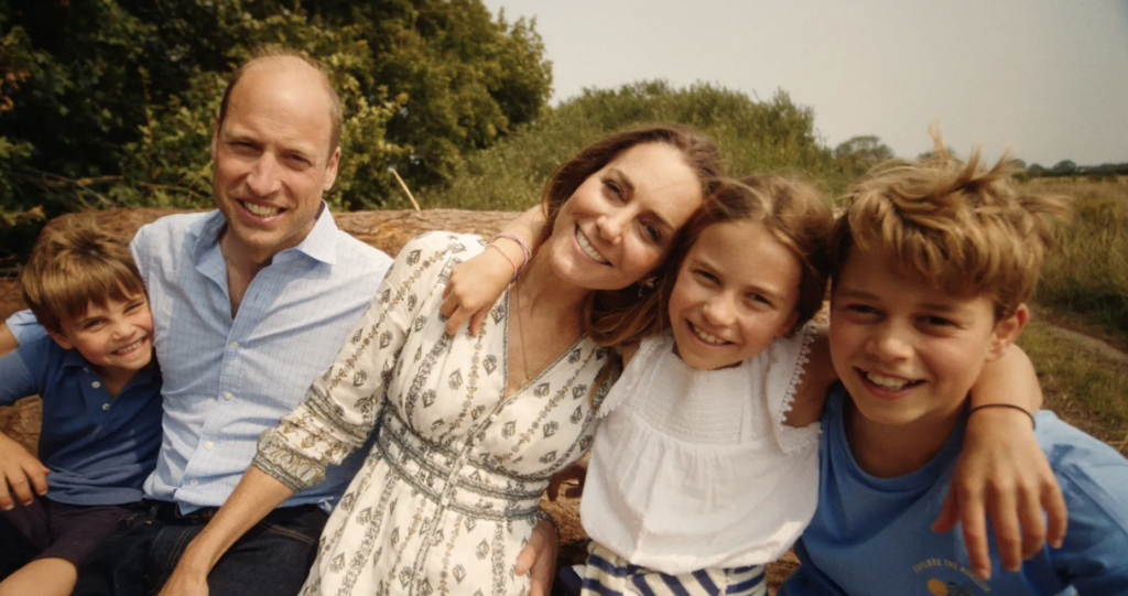 William en Catherine hebben voor hun kerstgroet een foto gekozen die gemaakt is tijdens de opnames van de video waarin Catherine aankondigde dat ze haar chemotherapie had afgerond. De opnames waren in augustus in Norfolk, waar het gezin woont.