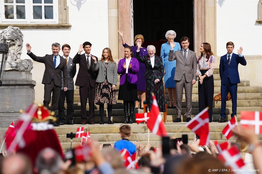 Een grote groep Denen heeft woensdag de tijd genomen om de jarige koningin Margrethe te feliciteren. Voor paleis Fredensborg stonden duizenden mensen met vlaggetjes te zwaaien om de voormalige vorstin met haar 85e verjaardag te feliciteren.