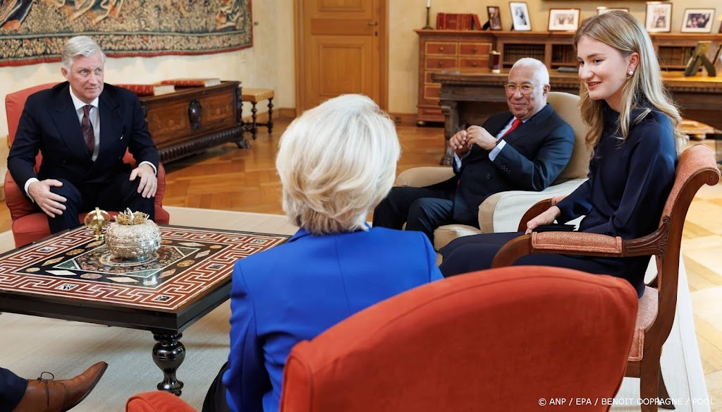 De dochter van koning Filip en koningin Mathilde was in het koninklijk paleis aanwezig bij het gesprek met voorzitter van de Europese Commissie Ursula von der Leyen, António Costa, voorzitter van de EU-leiders, en Roberta Metsola, voorzitter van het Europees Parlement. Volgens Belgische media had de koning zelf zijn dochter gevraagd om bij het gesprek aan te schuiven.
