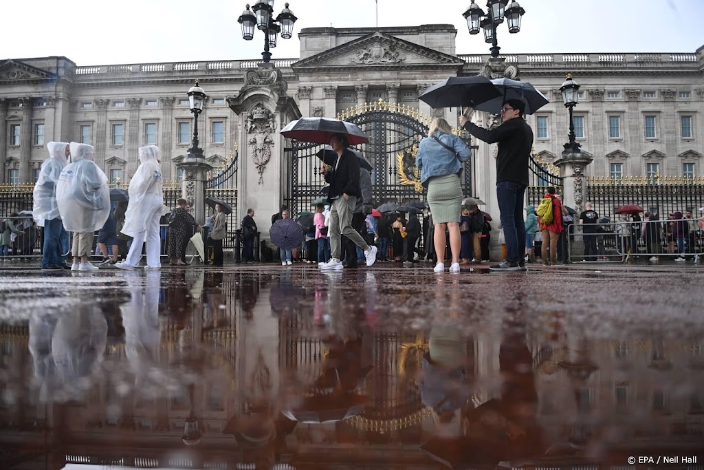 Mensen houden elkaar vast, huilen soms en plaatsen Britse vlaggen, bloemen of kaarsen voor Buckingham Palace. Ook portretten van de koningin zijn aan boeketten rozen bevestigd of liggen los op de straat. “Koningin Elizabeth. Koningin van de wereld”, luidt de tekst rond een portret van de vorstin die aan een bos rozen is bevestigd.