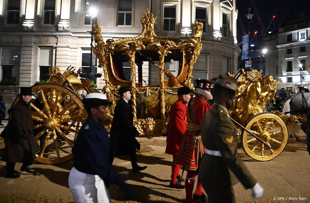 In de vroege ochtend werd in de straten van Londen al geoefend met de koetsen die gebruikt worden tijdens de kroning van Charles. Bij de oefening waren veel militairen, onder meer te paard of met een muziekinstrument, op de been.
