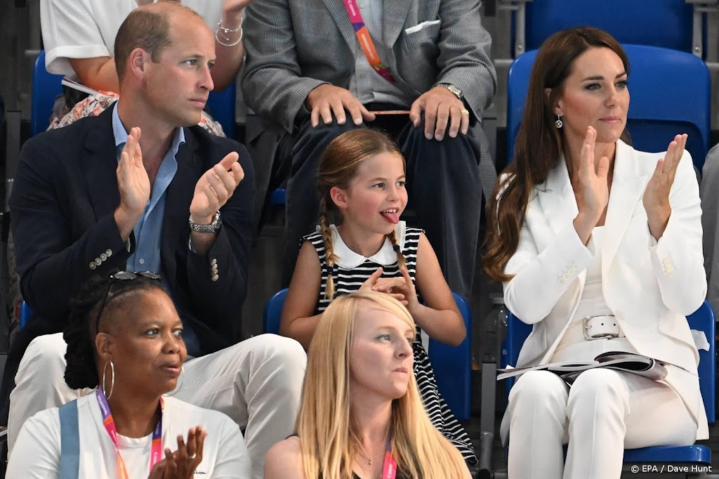 Prins William en zijn vrouw Catherine hebben hun dochter prinses Charlotte dinsdag meegenomen naar de zesde dag van de Commonwealth Games in Birmingham. De drie namen plaats op de tribune van het Sandwell Aquatics Centre om getuige te zijn van de zwemwedstrijden.
