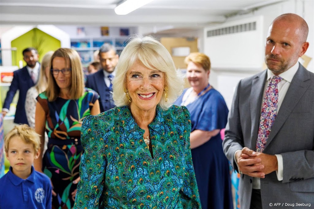 Koningin Camilla is op bezoek geweest bij een basisschool in Londen voor een poëtische bijeenkomst met kinderen en hun grootouders. Het Britse hof deelt dinsdag op sociale media foto’s van het bezoek.