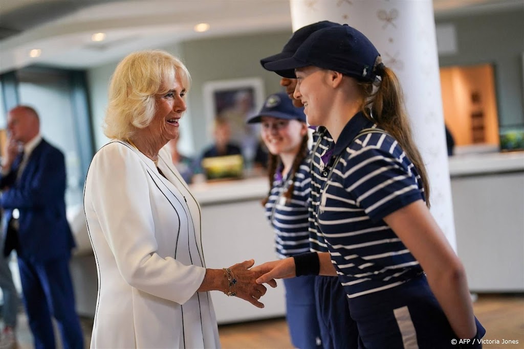De 75-jarige Camilla was woensdag samen met haar jongere zus Annabel bij de kwartfinales op Wimbledon. Het was de eerste keer dat zij als koningin haar opwachting maakte tijdens het toernooi.