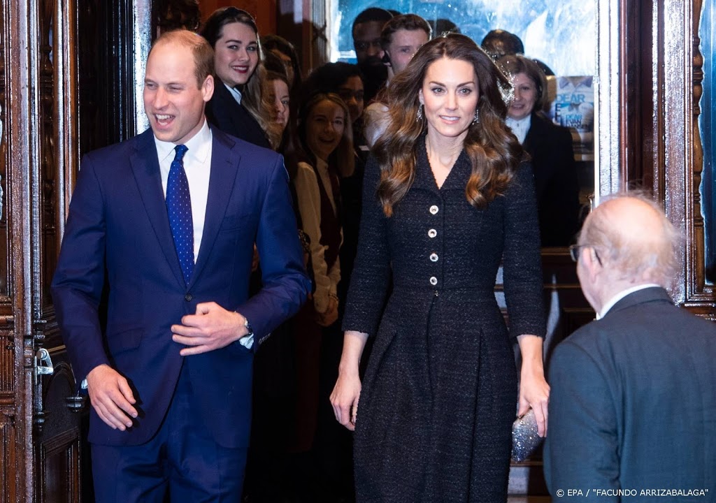 De hertogin van Cambridge had dinsdag een zwarte tweedjurk aan met opvallende knopen aan de voorkant. Catherine droeg daarbij zilveren pumps van Jimmy Choo en een bijpassende clutch. William was gehuld in een donkerblauw pak.