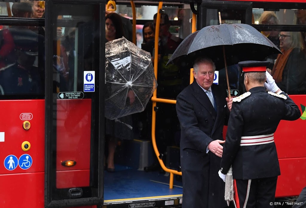 Prins Charles en zijn vrouw Camilla hebben de auto woensdag verruild voor een bus. Het koppel bracht een bezoek aan het London Transport Museum en arriveerde geheel in stijl in een rode dubbeldekker.