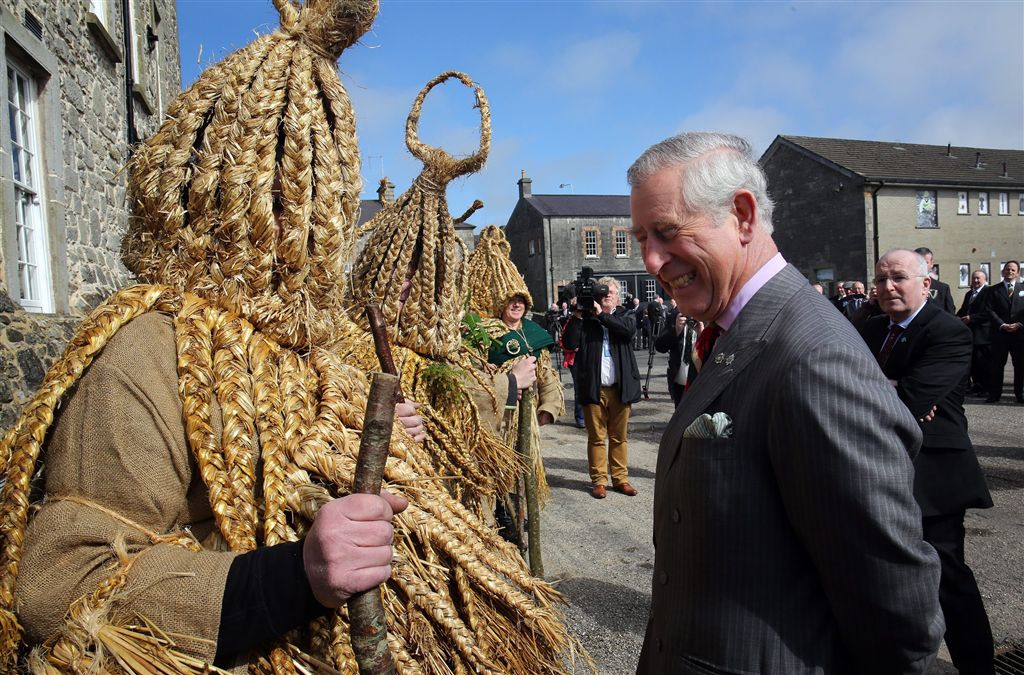 ENNISKILLEN – Prins Charles en zijn vrouw Camilla, de hertogin van Cornwall, zijn dinsdag begonnen aan een tweedaags bezoek aan Noord-Ierland. De eerste stop was Enniskillen, waar Charles in het plaatselijke kasteel van de ‘mummers’ of ‘mannen van stro’ praktische tips kreeg over het drinken van cider.