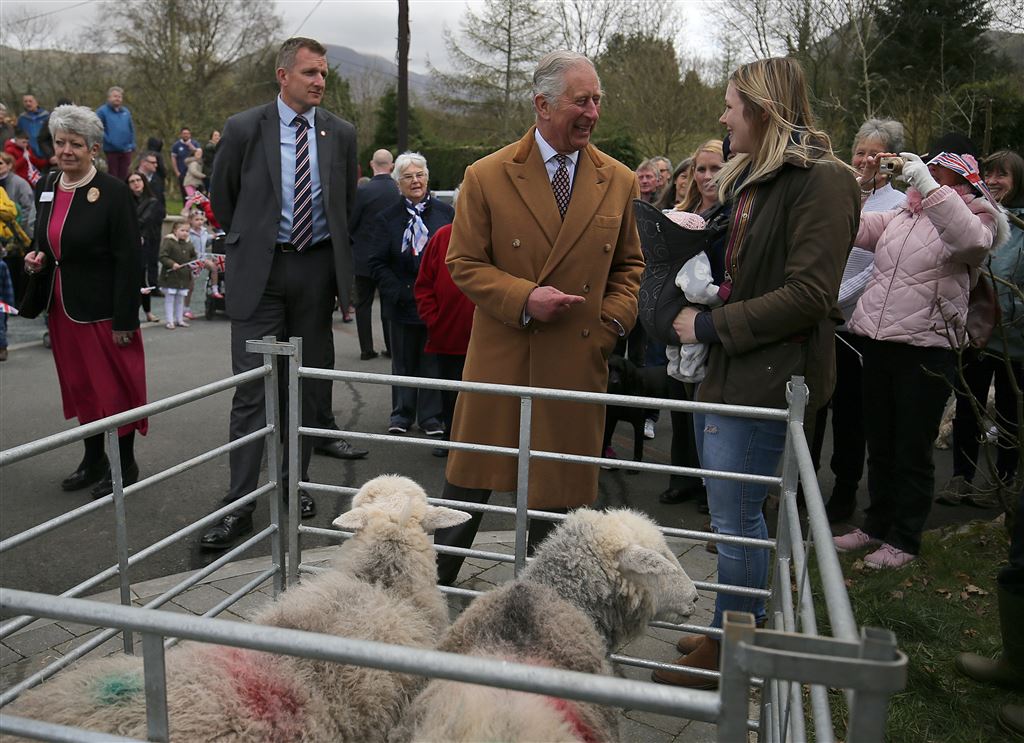 De inwoners van het gehucht waren massaal op de been voor Charles. Langs de weg stonden niet alleen kinderen te wachten om een glimp van de prins op te vangen; Charles werd ook opgewacht door twee schapen.