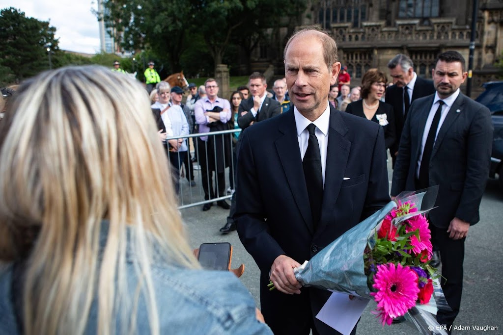 Prins Edward en zijn vrouw Sophie spraken met mensen die langs de kant stonden en hun medeleven betuigden met het verlies. “Ik denk dat we deze week allemaal iemand zijn verloren”, zei Edward daarop. “Ze was zo’n geweldige aanwezigheid in ons leven.” Tijdens het bekijken van de bloemenzee raakte Sophie geëmotioneerd.