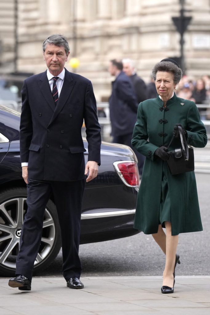 Prins William, zijn vrouw Catherine, hun kinderen, prins Charles, zijn vrouw Camilla, prinses Anne en prins Andrew kwamen de Londense kerk vlak voor Elizabeth binnen. Eerder namen ook onder anderen premier Boris Johnson, koning Willem-Alexander, koningin Máxima en prinses Beatrix plaats in de kerk. Prins Harry ontbreekt, hij en zijn vrouw Meghan blijven in Californië omdat ze zich niet veilig voelen in Engeland.