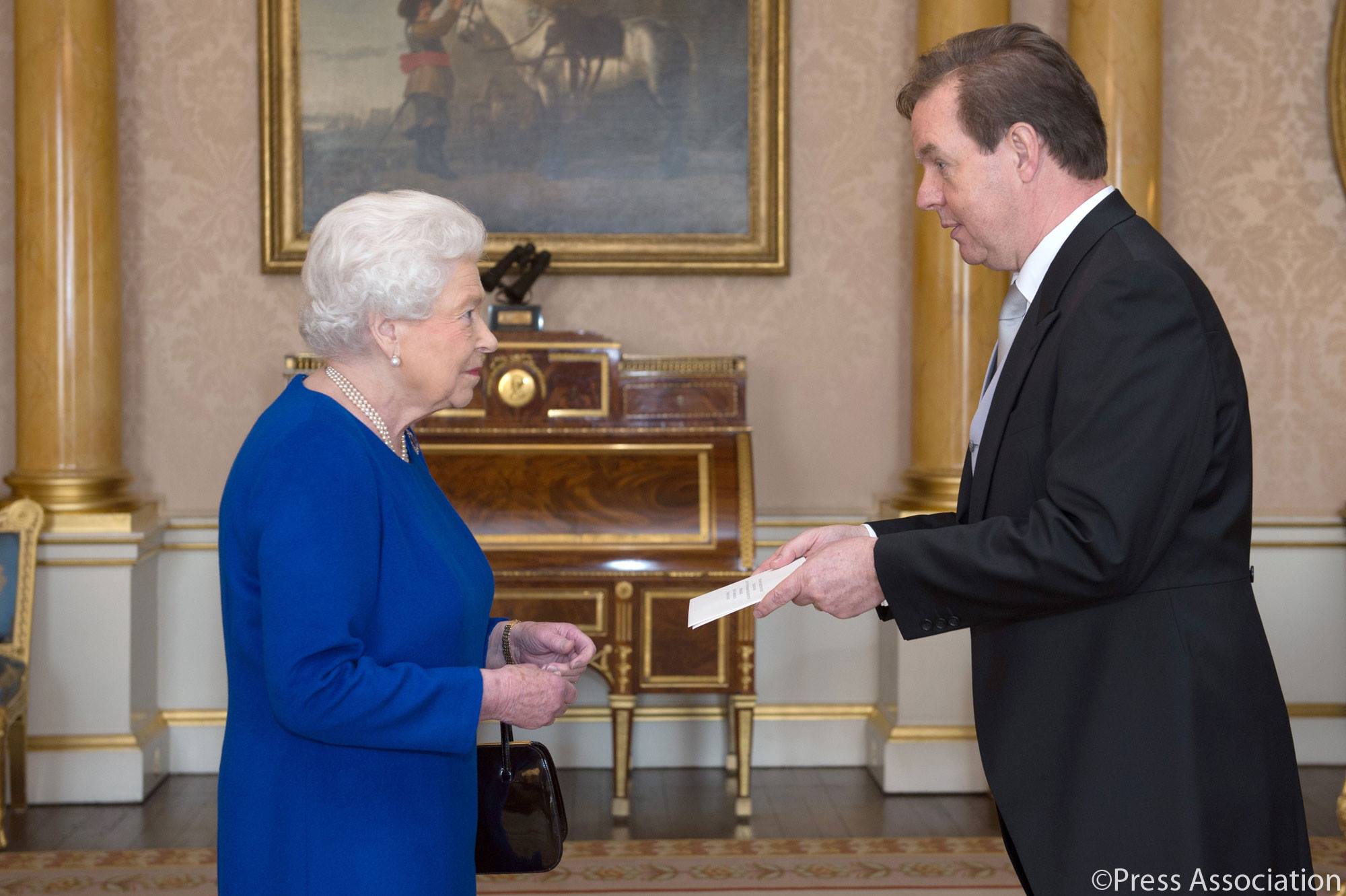 LONDEN – Koningin Elizabeth heeft de geloofsbrieven in ontvangst genomen van de nieuwe Nederlandse ambassadeur Simon Smits. Dat heeft het Britse hof donderdag op de eigen website bekendgemaakt. Het bericht ging vergezeld van een foto waarbij Smits de brieven in Buckingham Palace aanbiedt aan de Britse vorstin.