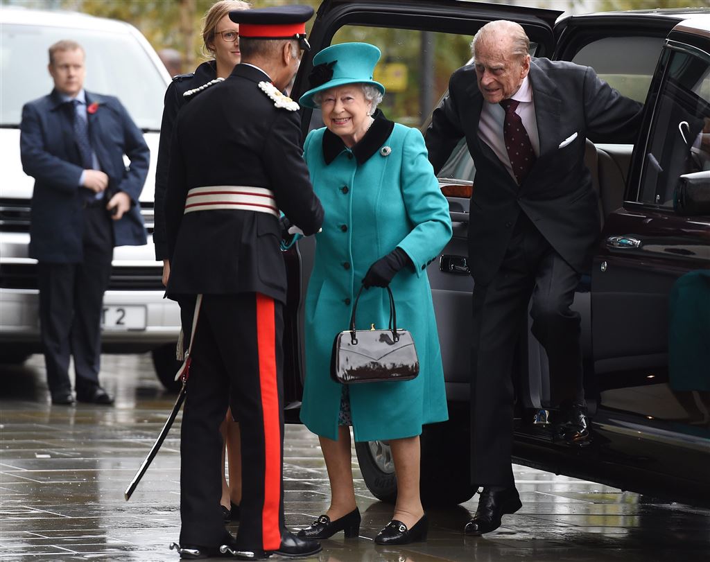 Koningin Elizabeth heeft woensdag in Londen de regen getrotseerd om een medisch onderzoekscentrum officieel te openen. De negentigjarige Britse vorstin werd vergezeld door haar 95-jarige man prins Philip en 56-jarige zoon prins Andrew.