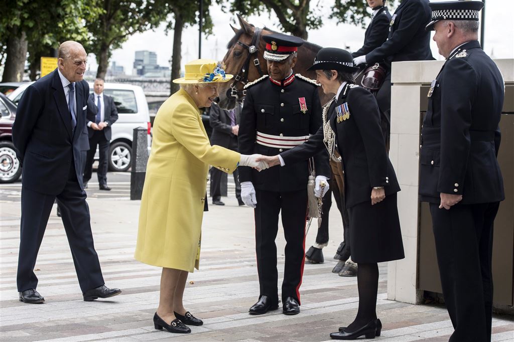 Elizabeth, in een gele outfit, en haar man prins Philip stonden tijdens het bezoek aan de Metropolitan Police Service uitgebreid stil bij de recente aanslagen in Groot-Brittannië. Zo begon de 91-jarige koningin haar rondleiding door het nieuwe gebouw, dat in november al in gebruik werd genomen, bij een memorandum voor agent Keith Palmer die omkwam bij de aanslag in Westminster.