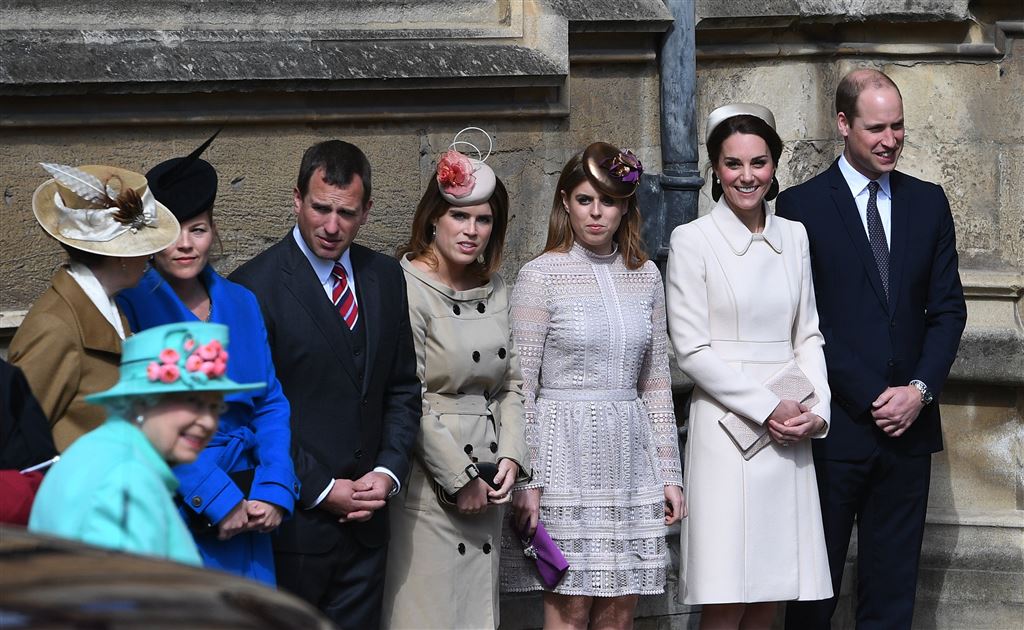De koningin en haar echtgenoot werden voor de kerk opgewacht door hun familieleden. Naast William en Kate stonden ook de prinsessen Beatrice en Eugenie en Peter Philips en zijn vrouw Autumn klaar voor de komst van Elizabeth en Philip. Ook prinses Anne woonde de paasdienst bij met haar man, prins Edward nam zijn hele gezin mee naar Windsor.