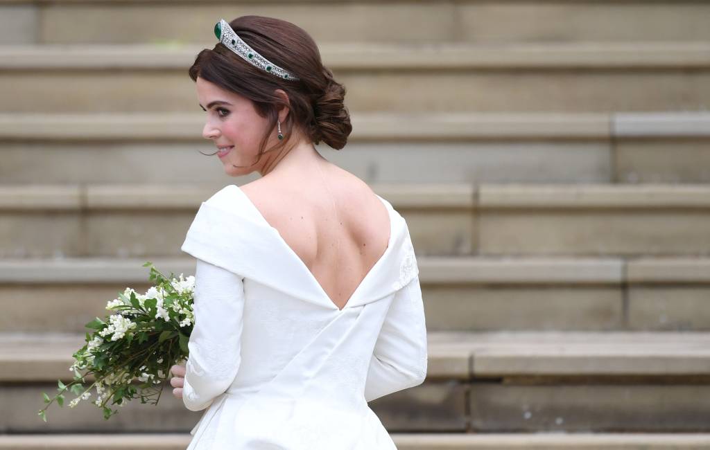 Prinses Eugenie gaf vrijdag haar jawoord in een witte trouwjapon van Peter Pilotto, het Britse modelabel van Peter Pilotto en Christopher De Vos.