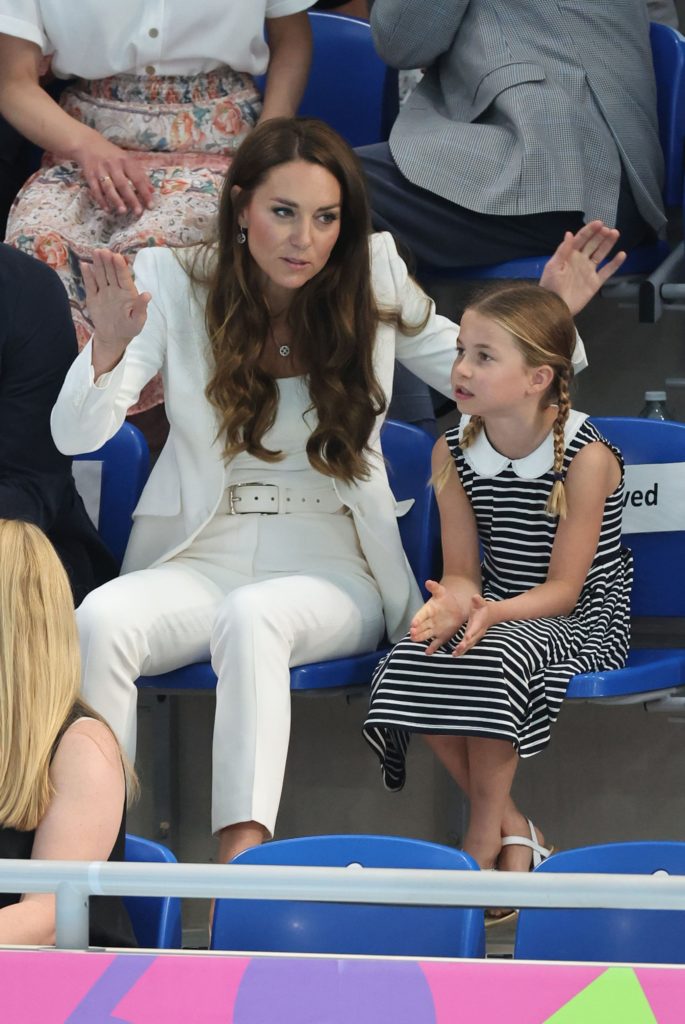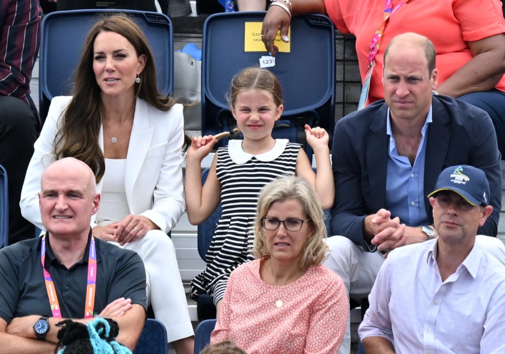Fans genieten volop van de gekke bekken die prinses Charlotte tijdens de Commonwealth Games (Gemenebestspelen) in Birmingham trok. Foto’s van het 7-jarige meisje gaan rond op het internet.