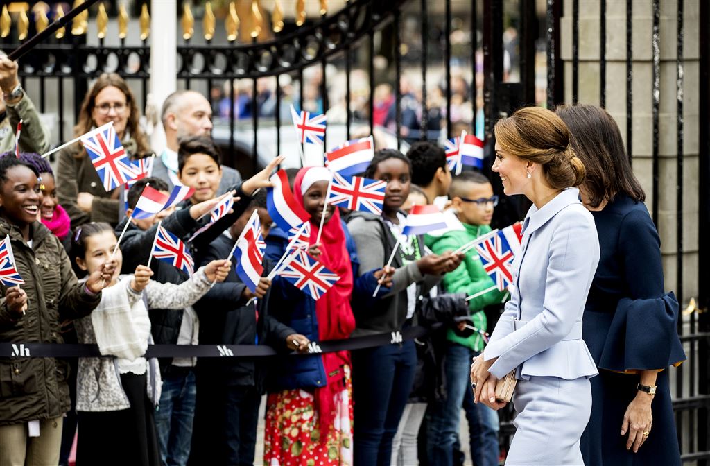 Onder grote belangstelling van publiek en de Britse pers arriveerde de vrouw van prins William bij het Mauritshuis. Kinderen van de Prinses Irene school uit Den Haag zwaaiden bij haar aankomst met vlaggetjes. Bij de poort werd Kate hartelijk welkom geheten door museumdirecteur Emilie Gordenker, die de hertogin rondleidt langs de topstukken van meesters als Gerard ter Borch, Gerrit Dou, Pieter de Hooch, Gabriël Metsu en Jan Steen. Hoogtepunt van de expositie is De muziekles van Johannes Vermeer.