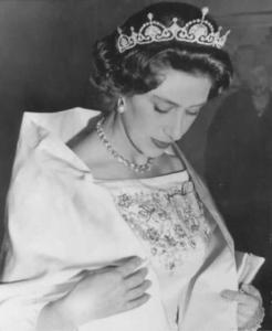 Catherine draagt het Lotus Bloem (Papyrus) diadeem ter ere van de Chinese president. Het sieraad werd eerder gedragen door onder anderen prinses Margaret en de koningin-moeder. Het diadeem is gemaakt van wat eens een diamanten collier was. Hertogin Catherine droeg het al eens eerder, maar werd er toevallig mee gezien, al rijdende in de auto, op weg naar een besloten receptie op het paleis. Dat Catherine nu een diadeem draagt, is de eerste publieke keer sinds haar huwelijk. Die dag droeg ze het Halo-diadeem.